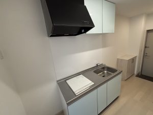 IHクッキングヒーター2口コンロ付きキッチン、浴室はウルトラファインバブルのミラブルシャワーヘッド付きとハイグレード設備のお部屋です。
